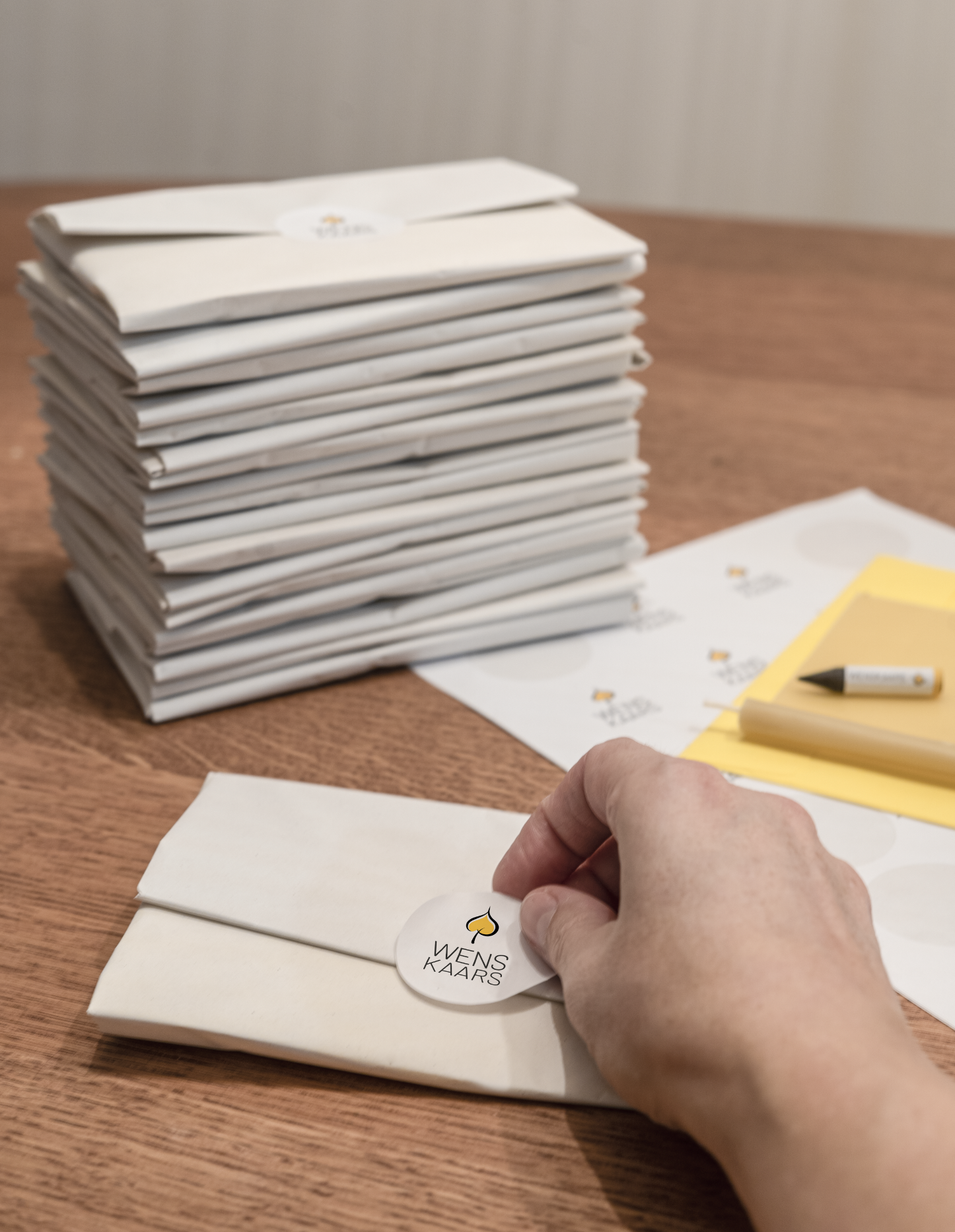 Soms zegt een kaartje gewoon niet genoeg. Voor dat soort blije of troostende momenten heb ik de Wenskaars bedacht: een originele verjaardagskaart en een hartverwarmende knuffel in één. Je kunt er iets opschrijven met het speciale krijtje, oprollen en aansteken. Ook opsturen kan, een envelop wordt bijgeleverd. Leuk als originele kerst- of verjaardagskaart maar bijvoorbeeld ook bijzonder bij een uitvaart, waar de aanwezigen een mooie herinnering kunnen aansteken. Dit product maak ik in eigen keuken van Hollandse bijenwas. Ook het krijtje maak ik zelf. Een compleet, duurzaam product gemaakt van natuurlijke materialen. Mede mogelijk gemaakt door de blije bijen van de Veluwe.